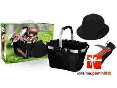 Niesamowity zestaw dla prawdziwego grzybiarza! Świetnie nadaje się na prezent dla kogoś bliskiego, kto przepada za spędzaniem czasu w lesie. W komplecie nóż do grzybów, który został wykonany z wysokiej jakości stali nierdzewnej, na końcu rękojeści znajduje się praktyczny pędzelek do oczyszczania grzybów, składany koszyk na grzyby (poza sezonem można go wykorzystać jako kosz na zakupy) oraz dwustronna czapka.