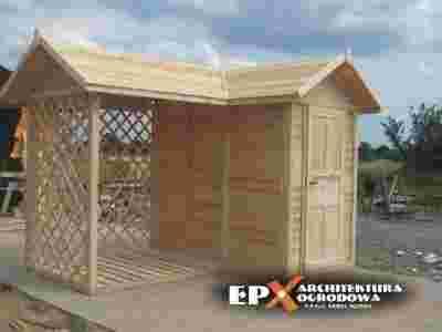 EPX-DND-042 Domek narzędziowy z drewutnią w kształcie litery –L- 3.5x2.5m prosto od PRODUCENTA EPX Architektura Ogrodowa [Pustków - woj. Podkarpackie] TYLKO TERAZ NAJWYŻSZA JAKOŚĆ I SUPER CENA 3800zł Przedmiotem aukcji jest domek narzędziowy z drewutnią kształcie litery L 3.5x2.5 m. Model ciągle modyfikowany. Jest to bardzo solidna konstrukcja wykonana z świerka lub sosny. Wszystkie elementy są szczegółowo strugane, szlifowane i frezowane. Domek wspaniale nadaje się na każdą działkę jako schowek na narzędzia, taczki itp. W drewutni możemy składać drewno kominkowe jak i inny opał. Domek jest naprawdę solidny i dopracowany do ostatniego detalu – jest to nasza specjalność. Po latach doświadczeń był kilka razy modyfikowany.. Domek jest dostępny tylko bezpośrednio u nas w sklepie allegro oraz w siedzibie firmy. Nie kupisz go w żadnym innym sklepie czy hurtowni ogrodowej. Specyfikacja produktu: - wymiary w podstawie: 3.5x2.5 m, DOMEK 2.5x1.5 m , DREWUTNIA – 2x1.5 m - konstrukcja bardzo masywna 90x90mm, - materiał: świerk, - dach dwuspadowy , - ściany i dach deska 20mm pióro-wpust (możliwe jest zamówienie ścian o większej grubości), - podłoga w domku pełna, - podłoga w drewutni ażurowa, - w zestawie drzwi z klamką i kluczem (możliwe na zasuwę z kłódką), - impregnacja ciśnieniowa dolnych elementów w cenie