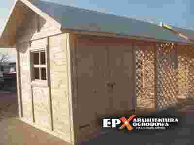 EPX-DND-060 Domek narzędziowy z drewutnią 4.5x2.5m prosto od PRODUCENTA EPX Architektura Ogrodowa [Pustków - woj. Podkarpackie] TYLKO TERAZ NAJWYŻSZA JAKOŚĆ I SUPER CENA 5200zł Przedmiotem aukcji jest domek narzędziowy z drewutnią 4.5x2.5 m. Model ciągle modyfikowany. Jest to bardzo solidna konstrukcja wykonana z świerka lub sosny. Wszystkie elementy są szczegółowo strugane, szlifowane i frezowane. Domek wspaniale nadaje się na każdą działkę jako schowek na narzędzia, taczki itp. W drewutni możemy składać drewno kominkowe jak i inny opał. Domek jest naprawdę solidny i dopracowany do ostatniego detalu – jest to nasza specjalność. Po latach doświadczeń był kilka razy modyfikowany. Domek jest dostępny tylko bezpośrednio u nas w sklepie allegro oraz w siedzibie firmy. Nie kupisz go w żadnym innym sklepie czy hurtowni ogrodowej. Specyfikacja produktu: - wymiary w podstawie: 4.5x2.5 m, DOMEK 2x2.5 m , DREWUTNIA 2.5x2.5 m - konstrukcja bardzo masywna 90x90mm, - materiał: świerk, - dach dwuspadowy, - ściany i dach deska 20mm pióro-wpust (możliwe jest zamówienie ścian o większej grubości), - podłoga w domku pełna, - podłoga w drewutni ażurowa, - okno otwierane szklone, - w zestawie drzwi na zasuwę z kłódką, - impregnacja ciśnieniowa dolnych elementów w cenie