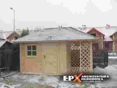 Przedmiotem aukcji jest domek narzędziowy z drewutnią 4.5x2.5 m.
