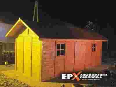 EPX-DND-058 Domek narzędziowy z drewutnią 7x2.5m prosto od PRODUCENTA EPX Architektura Ogrodowa [Pustków - woj. Podkarpackie] TYLKO TERAZ NAJWYŻSZA JAKOŚĆ I SUPER CENA 7400zł Przedmiotem aukcji jest domek narzędziowy z drewutnią 7x2.5 m. Model ciągle modyfikowany. Jest to bardzo solidna konstrukcja wykonana z świerka lub sosny. Wszystkie elementy są szczegółowo strugane, szlifowane i frezowane. Domek wspaniale nadaje się na każdą działkę jako schowek na narzędzia, taczki itp. W drewutni możemy składać drewno kominkowe jak i inny opał. Domek jest naprawdę solidny i dopracowany do ostatniego detalu – jest to nasza specjalność. Po latach doświadczeń był kilka razy modyfikowany.. Domek jest dostępny tylko bezpośrednio u nas w sklepie allegro oraz w siedzibie firmy. Nie kupisz go w żadnym innym sklepie czy hurtowni ogrodowej. Specyfikacja produktu: - wymiary w podstawie: 7x2.5 m, DOMEK 3.5x2.5 m , DREWUTNIA 3.5x2.5 m - konstrukcja bardzo masywna 90x90mm, - materiał: świerk, - dach dwuspadowy, - ściany i dach deska 20mm pióro-wpust (możliwe jest zamówienie ścian o większej grubości), - podłoga w domku pełna, - podłoga w drewutni ażurowa, - okna otwierane szklone, - w zestawie drzwi na zasuwę z kłódką, - impregnacja ciśnieniowa dolnych elementów w cenie