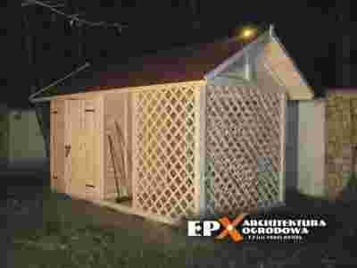 EPX-DND-060 Domek narzędziowy z drewutnią 4.5x2.5m prosto od PRODUCENTA EPX Architektura Ogrodowa [Pustków - woj. Podkarpackie] TYLKO TERAZ NAJWYŻSZA JAKOŚĆ I SUPER CENA 5200zł Przedmiotem aukcji jest domek narzędziowy z drewutnią 4.5x2.5 m. Model ciągle modyfikowany. Jest to bardzo solidna konstrukcja wykonana z świerka lub sosny. Wszystkie elementy są szczegółowo strugane, szlifowane i frezowane. Domek wspaniale nadaje się na każdą działkę jako schowek na narzędzia, taczki itp. W drewutni możemy składać drewno kominkowe jak i inny opał. Domek jest naprawdę solidny i dopracowany do ostatniego detalu – jest to nasza specjalność. Po latach doświadczeń był kilka razy modyfikowany. Domek jest dostępny tylko bezpośrednio u nas w sklepie allegro oraz w siedzibie firmy. Nie kupisz go w żadnym innym sklepie czy hurtowni ogrodowej. Specyfikacja produktu: - wymiary w podstawie: 4.5x2.5 m, DOMEK 2x2.5 m , DREWUTNIA 2.5x2.5 m - konstrukcja bardzo masywna 90x90mm, - materiał: świerk, - dach dwuspadowy, - ściany i dach deska 20mm pióro-wpust (możliwe jest zamówienie ścian o większej grubości), - podłoga w domku pełna, - podłoga w drewutni ażurowa, - okno otwierane szklone, - w zestawie drzwi na zasuwę z kłódką, - impregnacja ciśnieniowa dolnych elementów w cenie