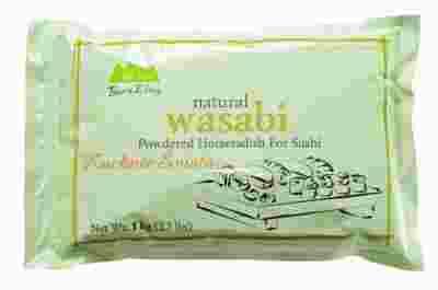 Ponieważ naturalne Wasabi jest trudno dostępne i drogie od wielu lat produkuje się doskonały substytut z chrzanu europejskiego, gorczycy, skrobi i barwników. Dlatego produkt nazywamy chrzanem Wasabi (90% produktów sprzedawanych w Polsce to substytuty!!!). Chrzan Wasabi w proszku jest powszechnie stosowany w sushi barach.