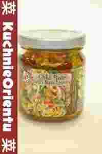 Tajska ostra pasta z grubo ciętych papryczek chili i całych liści bazylii i kawałków czosnku. Pastę tą używa się do przyprawiania dań smażonych stir-fry, duszonych i innych. Nadaje ona daniom osty, orientalny smak. Skład: olej sojowy, liście bazylii (32%), czosnek (15%), sól, cukier, regulator kwasowości (kwas octowy), konserwant (benzoesan sodu). Produkcja: Tajlandia.