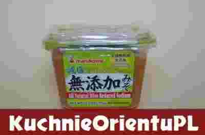 Pasta miso o obniżonej o 25% zawartości soli. Mutenka miso to najwyższej jakości 100% naturalna pasta miso (Mutenka znaczy „bez dodatków”), uzyskana w 2-etapowym procesie fermentacji. Do jej produkcji używa się najlepsze składniki niemodyfikowana genetycznie. Skład: woda, ryż, soja (25,3%) niemodyfikowana genetycznie, sól morska. Produkcja: MARUKOME USA.