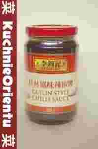 Sos chili Guilin renomowanego producenta z Hongkongu firmy LEE KUM KEE. Jest to słynny sos chili pochodzący z chińskiego miasta Gullin, otrzymywany według starożytnej receptury. Doskonały jako dip i do przyrządzania dań stir-fry. Skład: solone papryczki chili 39%, fermentowana pasta sojowa 20% (woda, sól, soja, pszenica), woda, sos sojowy (woda, sól, soja, mąka pszenna), cukier, suszony czosnek, olej sezamowy, olej sojowy, chili w proszku 2%, cebula dymka, skrobia kukurydziana modyfikowana, barwnik (karmel E150c), regulator kwasowości (kwas mlekowy). Produkcja: Chiny.