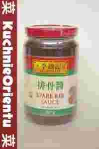 Sos do żeberek renomowanego producenta z Hongkongu firmy LEE KUM KEE. Doskonały do marynowania, pieczenia, grillowania i smażenia stir-fry żeberek. Skład: cukier, woda, pasta pomidorowa, sól, fermentowana pasta sojowa (woda, sól, soja, pszenica), pasta sezamowa, czosnek, skrobia kukurydziana modyfikowana, przyprawy, olej sezamowy, regulator kwasowości (kwas mlekowy), barwnik (karmel E150c), stabilizator (guma ksantanowa). Wyprodukowane w fabryce przetwarzającej sezam i orzeszki ziemne. Produkcja: Chiny.