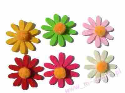 [m-craft] KWIATKI Z POMPONEM FILC 6 szt na przylep