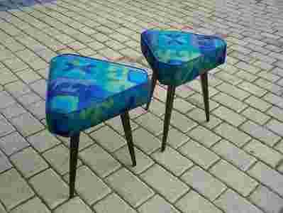 Witam serdecznie na mojej aukcji. Mam Państwu do zaoferowania komplet oryginalnych stołków pochodzących z lat 60-tych ubiegłego stulecia w ilości dwóch sztuk.