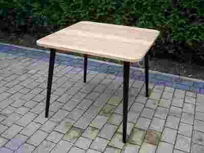 Jego kwadratowy blat o zaokraglonych rogach osadzony jest na czterech stabilnych nogach.