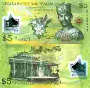 ~ Brunei 5 Ringgit POLIMER 2011 UNC Nowość PIĘKNY