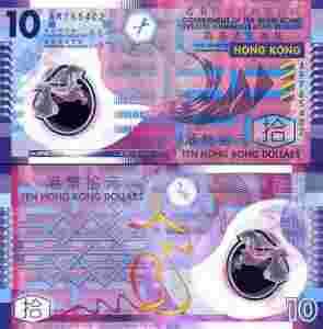 ~ Hong Kong $10 POLIMER 2007 Purpura UNC PIEKNY