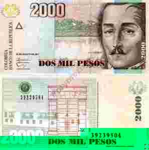 ~ Kolumbia 2000 Pesos P-New 2011 NOWY WYMIAR UNC