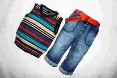 Polecam komplecik dla chłopca firmy NEXT. W skład wchodzi kamizelka w kolorowe paseczki firmy NEXT oraz spodnie jeans podwijane przeszywane z paskiem również firmy NEXT. Rozmiar z metki 86.