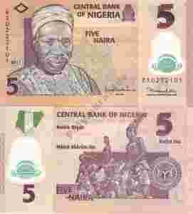 ~ Nigeria 5 Naira P-32b 2011 POLIMER UNC Sign C