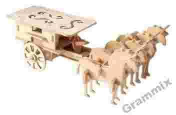 Zestaw zawiera płytki z wytłoczonymi drewnianymi puzzlami, które stopniowo wyłuskujemy w trakcie składania.