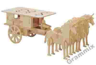 Zestaw zawiera płytki z wytłoczonymi drewnianymi puzzlami, które stopniowo wyłuskujemy w trakcie składania.