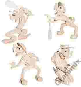 Zestaw zawiera płytki z wytłoczonymi drewnianymi puzzlami, które stopniowo wyłuskujemy w trakcie składania.