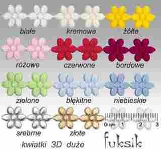 ~FUKSIK~ kwiatki 3D 1,5x1,5cm 34szt atłasowe