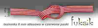 ~FUKSIK~ tasiemka wstążka 2m CZERWOWA w paski 8mm