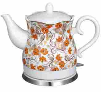 Ceramiczny czajnik bezprzewodowy łączący w sobie oryginalny design z nowoczesną technologią. Barwnie, z dbałością o każdy szczegół wykończony korpus czajnika oraz unikalny ornament czynią z niego ozdobę kuchni nawiązując do najmodniejszych stylów dekoracji wnętrz. Wygodny uchwyt oraz automatyczny wyłącznik zapewniają bezpieczeństwo podczas użytkowania. Miejsce w podstawie na przewód zasilający oraz podświetlany na niebiesko włącznik sygnalizujący pracę czajnika czynią go praktycznym w użytkowaniu.