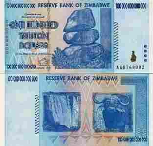 ~Zimbabwe 100 TRILLION 100 [zasłonięte] 000 000 000 Dollars