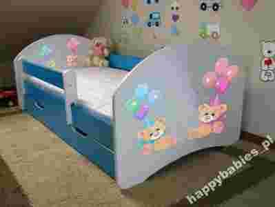 Przedmiotem aukcji jest nowoczesne łóżko dla dzieci „ Happy Blue ” z szufladą 160/80 cm z wyjmowaną barierką ochronną zdejmowaną na dzień zakładaną na noc