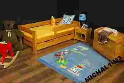 Przedmiotem aukcji jest łóżko olchowe model Ninio z barierką, szufladą , materacem stelażem wymiar 70x160 .
