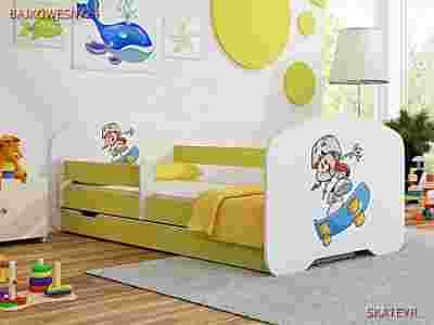 Łózko produkowane jest jako dwustronne , może być lewe lub prawe w zależności od potrzeb. Krawędzie Łózka są zaokrąglone i zabezpieczone specjalnym obrzeżem PCV.Wezgłowie oraz przednóżek łóżka posiadają kolorowy nadruk wykonany z ekologicznych farb w pełni bezpieczny dla dzieci.Nadruki posiadają piękną kolorystykę i są zabezpieczone specjalnym laminatem. Łóżko posiada funkcjonalną szufladę na gumowych kółkach dzięki czemu przy jej wysuwaniu nie rysujemy podłogi. Szuflada świetnie sprawdza się w przechowywaniu pościeli lub np. zabawek itp. .