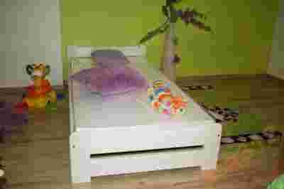 Łóżko wykonane jest z drewna o grubości 2,6 cm - sprawia to, że jest bardzo stabilne. Łóżko EURO w kolorze białym idealnie sprawdzi się w pokoju dziecięcym, dodatkowo w połączeniu z szafkami nocnymi z naszej oferty – które znaleźć można na innych naszych aukcjach, doskonale się prezentuje.