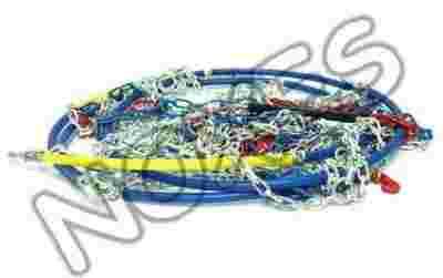 Wysokiej jakości łańcuchy rombowe ze stali ocynkowanej. Geometria splotu formująca romb zapewnia maksymalną przyczepność podczas jazdy w kopnym śniegu. Łańcuchy zaopatrzone w elastyczną klamrę napinajacą oraz urządzenie regulujące odpowiedni naciąg. Elementy łańcucha mające kontakt z felgą zostały pokryte lakierem.