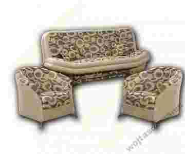 Nowy, wygodny komplet wypoczynkowy w skład którego wchodzi rozkładana wersalka z pojemnikiem na pościel oraz dwa fotele.
