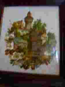 Ładny obraz malowany na szkle rama przedwojenna