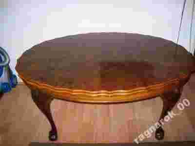Ladnie , faliście wykończony brzeg stołu daje mu niepowtarzalny efekt, w całości wykonany z drewna (nie jakiś prasowany karton), blat politurowany, wyłorzony orzechem.