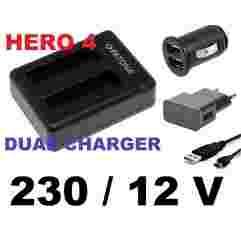 Ładowarka 230 12V na 2 baterie GoPro 4 AHDBT-401