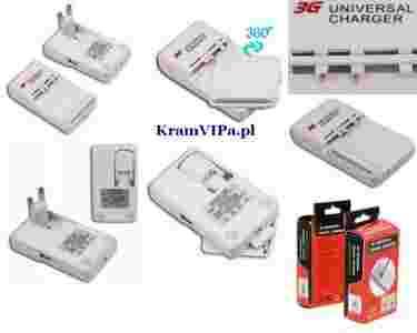 Ładowarka 3G uniwersalna ze złączem USB i wtykiem do gniazda REWELACYJNA ładowarka może być używanA w dowolnym miejscu na świecie. Jeśli BRAKUJE gniazda zasilania można JĄ podłączyć do laptopa