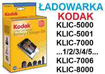 Uniwersalna ładowarka do akumulatorów litowo-jonowych Kodak: KLIC-5000, KLIC-5001, KLIC-7000, KLIC-7001, KLIC-7002, KLIC-7003, KLIC-7004, KLIC-7005, KLIC-7006 oraz KLIC-8000, które używane są w następujących produktach Kodak: Z812 IS, DX6490, DX7440, DX7590, DX7630, EASYSHARE-ONE, LS420 , LS443 , LS633, LS743, LS753, M753, M753 , M853, M873, M883, P712, P850, P880, V1003, V1233, V1253, V530, V550, V570, V603, V610, V705, V803, Z612, Z712 IS, Z730, Z7590, Z760 , C763
