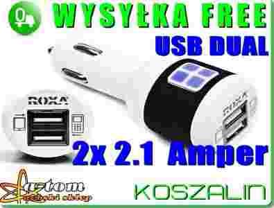 Najnowsza ładowarka samochodowa marki ROXA® z dwoma wejściami USB to idealne rozwiązanie dla osób korzystających w samochodzie z dwóch urządzeń np. tabletu i telefonu.