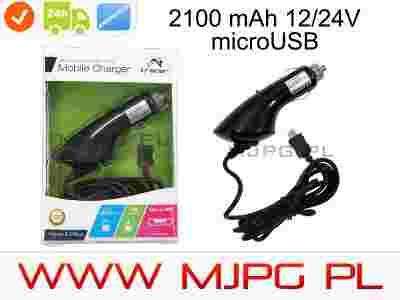 Ładowarka samochodowa do urządzeń mobilnych ze złączem microUSB.