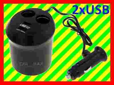 ŁADOWARKA SAMOCHODOWA ZAPALNICZKA KUBEK 2x USB