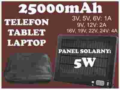 UNIWERSALNA ŁADOWARKA SŁONECZNA SOLARNA MOBILE POWER 25000mAh wbudowana bateria litowo polimerowa
