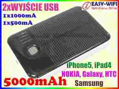 Ładowarka SOLARNA POWER BANK 5000mAh 2xUSB 1/0.5A