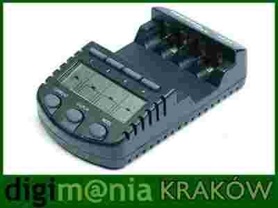 Ładowarka wyposażona jest w wyświetlacz ciekłokrystaliczny LCD, na którym, za pomocą 7 przycisków, w które wyposażona jest ładowarka, możemy zobaczyć prąd ładowania, prąd rozładowania, napięcie, pojemność, czas ładowania, tryb pracy oddzielnie dla każdego obwodu.