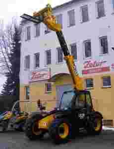 4-biegowa skrzynia biegów JCB powershift z dźwignią zmiany biegów w kolumnie kierowniczej pozwalającej na zmianę kierunku jazdy będącą jednocześnie przełącznikiem płynnej zmiany biegów pod obciążeniem umożliwiając wykorzystanie podczas jazdy 4 biegów do przodu i 4 do tyłu.