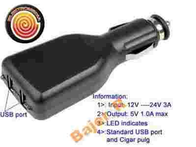 ŁADOWARKA ZASILACZ SAMOCHODOWY 12V 2 x USB GPS