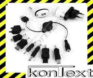 Przedmiotem aukcji jestzestaw do ładowania z 7 końcówkami, gniazdem USB / mini USB oraz ładowarką sieciową oraz samochodową.