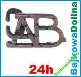 Trzy litery: A, B i C - jak widać. Nic więcej. Literę C należy zdjąć z elementu AB. Obranie niewłaściwej drogi nieodzownie zawiedzie nas w "ślepą uliczkę". Oparta na łamigłówce, która ukazała się w Anglii w 1911 roku. Rekomendowana jest szczególnie dla początkujących, którzy dopiero smakują świata umysłowych zagadek.