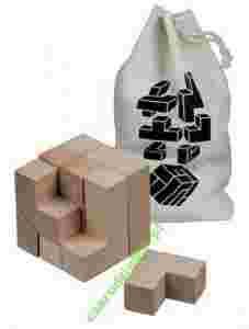 Doskonała zabawa dla jednej osoby. Łamigłówka składa się 7 drewnianych elementów, które po odpowiednim zestawieniu stworzą jedną całość - sześcian o wymiarach 45x45x45 mm. Rozwiązanie łamigłówki stanowi schemat graficzny nadrukowany na bawełnianym woreczku oraz ułożona kostka prezentowana na dołączonych do poniższego opisu zdjęciach.