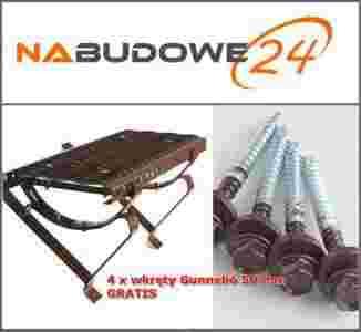 GRATIS cztery wkręty Gunnebo długości 50 mm służące do przymocowania ławy do konstrukcji dachu.