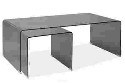 Blat wykonany z giętego szkła w kolorze grafitowym.